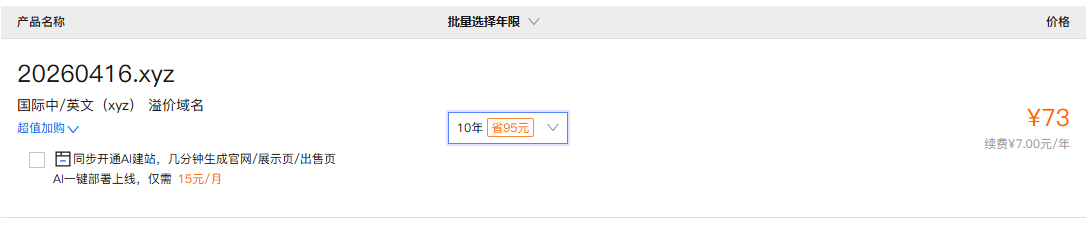 同样纯数字的 xyz 域名,发现在阿里云购买 10 年也不过 70 来块人民币。